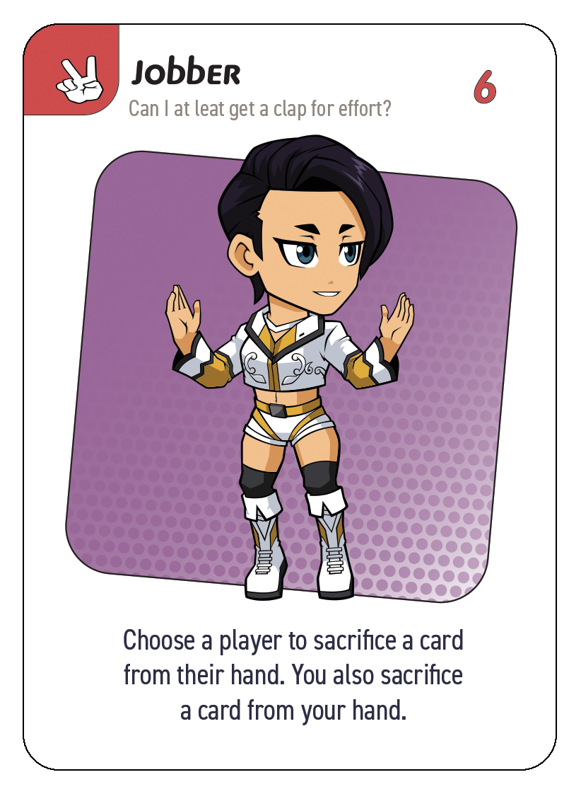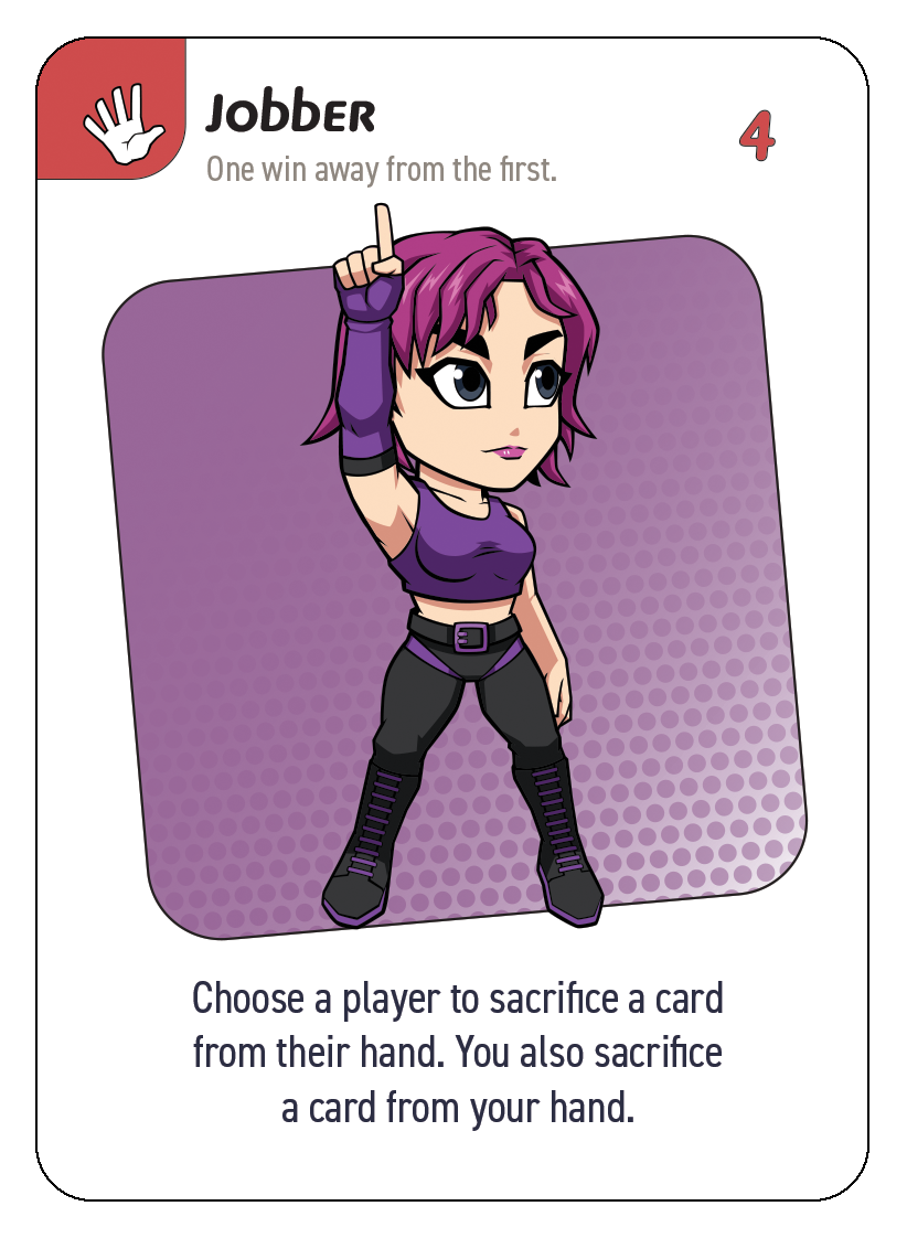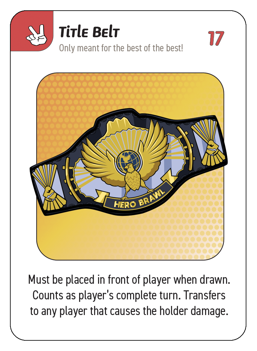Hero Brawl is a wrestling-themed card game where you compete for the HERO BRAWL TITLE BELT while trying to knock out all the cards in your opponents' hands.