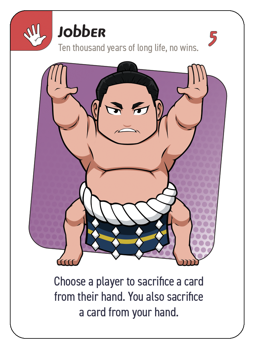 3. The Roshambo symbols on the two cards are compared in private between the two players to determine a winner (if they are the same symbol, the higher numbered card is the winner).