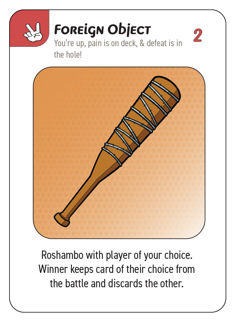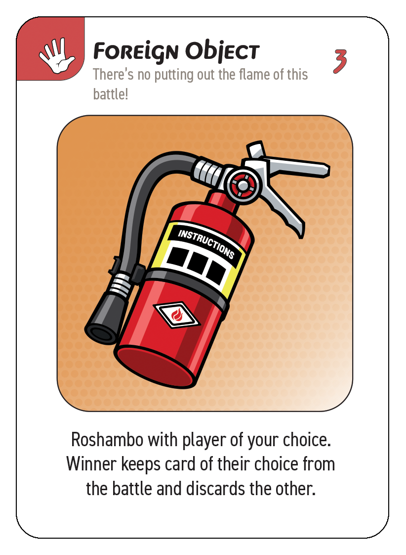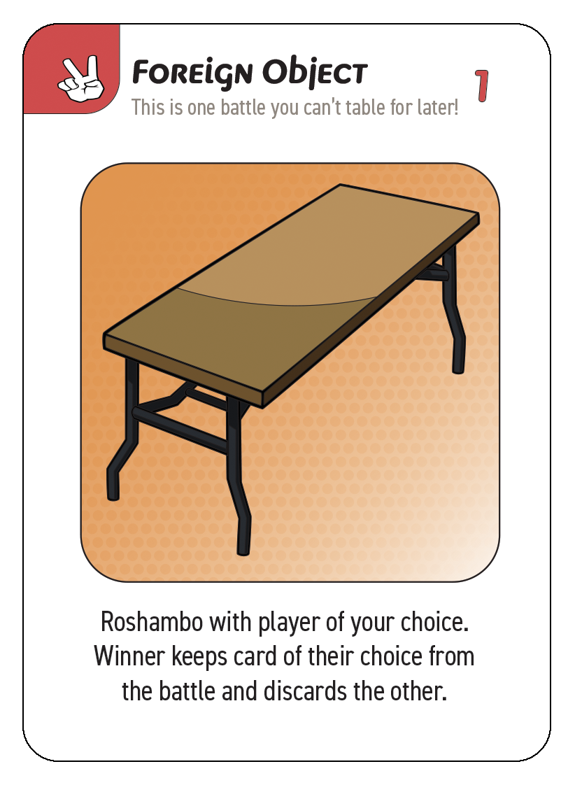 All Foreign Object cards, when played, result in a Roshambo battle.