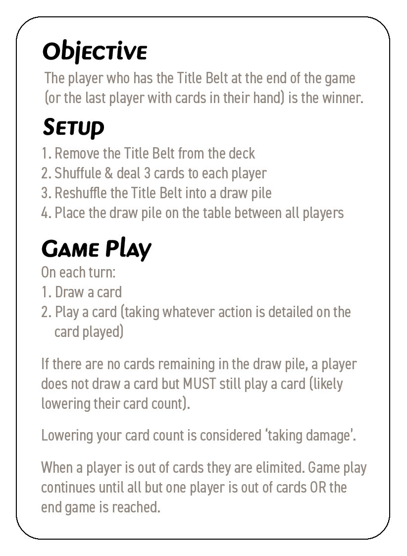 3. Add the title belt back to the undealt deck, re-shuffle, & place the deck in the middle of all the players. This is the draw pile.